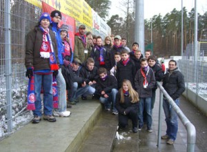 und um dann eine halbe Stunde später beim Bäcker (ab Werk) die vorbestellten Brötchen einzusammeln und dann mit Sack und Pack durch Schneeverwehungen bei gefühlten -10°C zum Stadion Zoo zu fahren, wo wir uns um 7:45 Uhr mit den ca. 20 Teens und Olaf, dem Busfahrer unseres Tour-Busses verabredet haben
