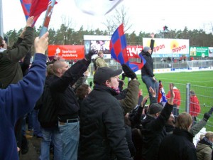 in unserer Fankurve nicht mehr zu hören sind und wer von den gegnerischen Fans noch mutig sein Fähnlein schwingt wird von unserem Tobi eines besseren belehrt, der auch bei inzwischen gefühlten -20°C den 2m-Fahnenmast mit bergischem Löwenmotiv kraftvoll von links nach rechts durch den verschneiten und inzwischen doch recht unangenehm eisigen und kräftigen Wind schwenkt