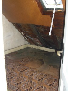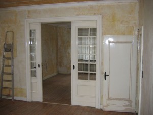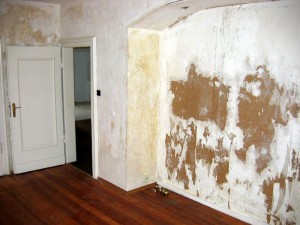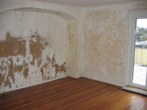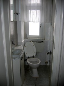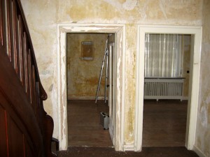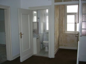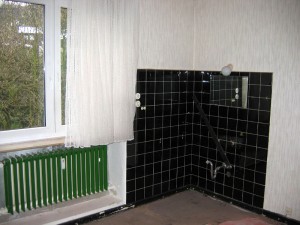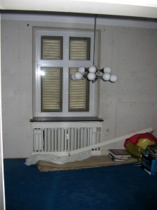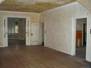 Am Samstag, 13.03. war es dann soweit. Besichtigungstermin. Eine kleine „Charmanter Altbau mit herrlichem Sonnengarten und 2 Balkonen“ heißt es im Exposée. Na denn man ran und Butter bei die Fische. Empfangen wurden wir von der jungen Maklerin mit den Worte: „Ach, ich weiß nicht, ob ich Ihnen bereits mitgeteilt hatte, dass wir vor kurzem einen Heizungsrohrbruch hatten?“ Tja, schlagartig schwand die Vorfreude und stieg die Befürchtung wieder einmal (war ja nicht die erste Ortsbegehung auf dem langen Weg der Immobiliensuche) mit fürchterlichen und nicht hinnehmbaren Schreckensmeldungen (wie z.B. in einem Haus keine Heizung – alles Nachtspeicher) überrascht zu werden. Aber es kam ganz anders. Was wir sahen, war dies: