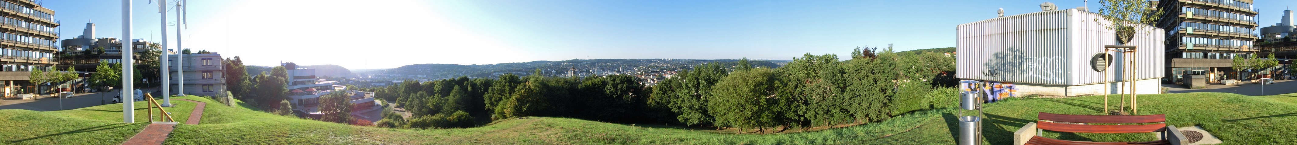 Ich packe meinen Koffer und nehme mit: 1 Picknickdecke, 2 Teller, 2 Gabeln, 2 Messer, 2 Becher, 1 Flasche Apfelschorle, 1 kleine Kühltasche, gefüllt mit geräucherter Forelle, Schafskäse und Kräutercreme, halte kurz im Supermarkt und füge frische Cocktailtomaten, 1 Dose Mais, gemischten Salat, Lachs, Käsewürfel und Sylter Dressing hinzu, setze mich mit dem Liebsten ins Auto und fahre zur Uni Wuppertal, laufe in Erinnerungen schwelgend quer über den Campus und komme schließlich an: