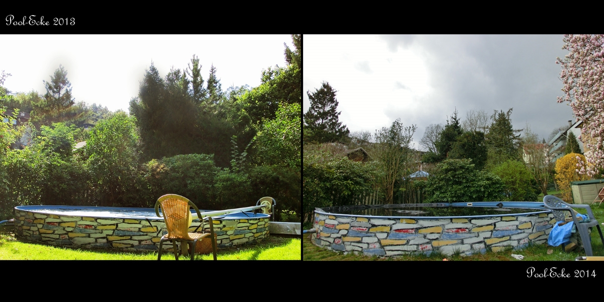 Mega lecker. Im UG kann bereits tapeziert werden. Der Teppich im OG wurde schon mal zur Probe ausgebreitet – sehr gemütlich. Der Elektriker will bis nächste Woche die Elektrik im EG fertig stellen. Am Wochenende haben sich unser Installateur für die Wasseranschlüsse im UG, unsere „Freundin“ zum Trennwand fertig stellen und ein paar Helfer für Tapezierarbeiten angekündigt. Im EG kann schon gereinigt werden, weil nichts mehr zu bohren oder zu fräsen ist. Die eingepflanzten Gurken blühen. Die erste Post war im Briefkasten. Mit der Tauchpumpe können wir unseren Garten mit Wasser aus dem inzwischen biotopartigen Pool versorgen. Alles wird gut!