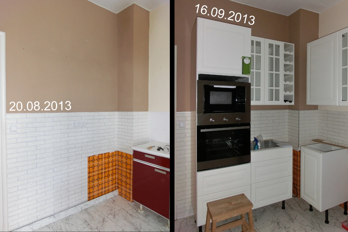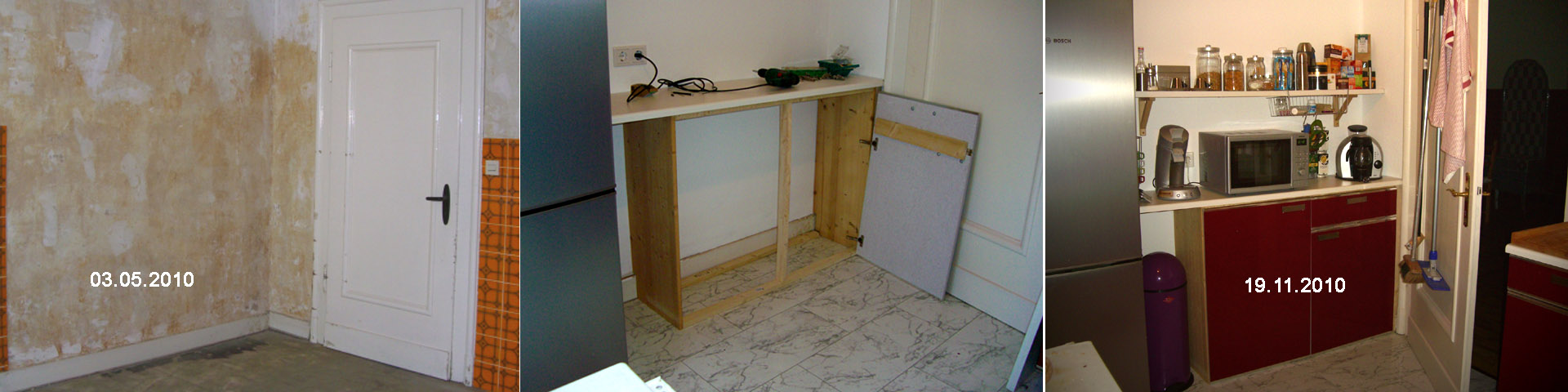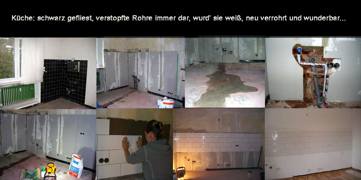 Unsere aktuelle Zielsetzung: Küche tapezieren und streichen, Hängeschränke anbringen (auch bei der Mutter), Übergangs- und Fußleisten anbringen.