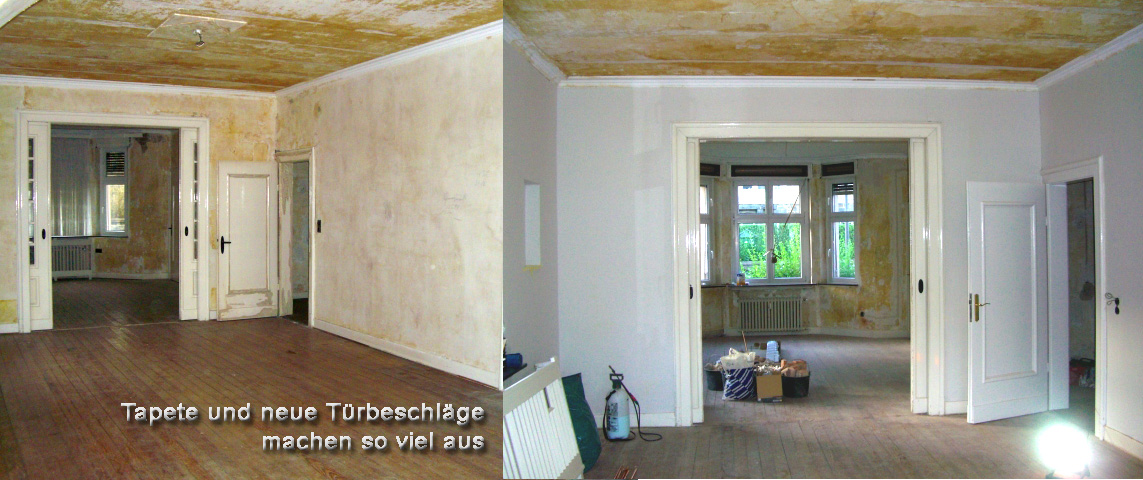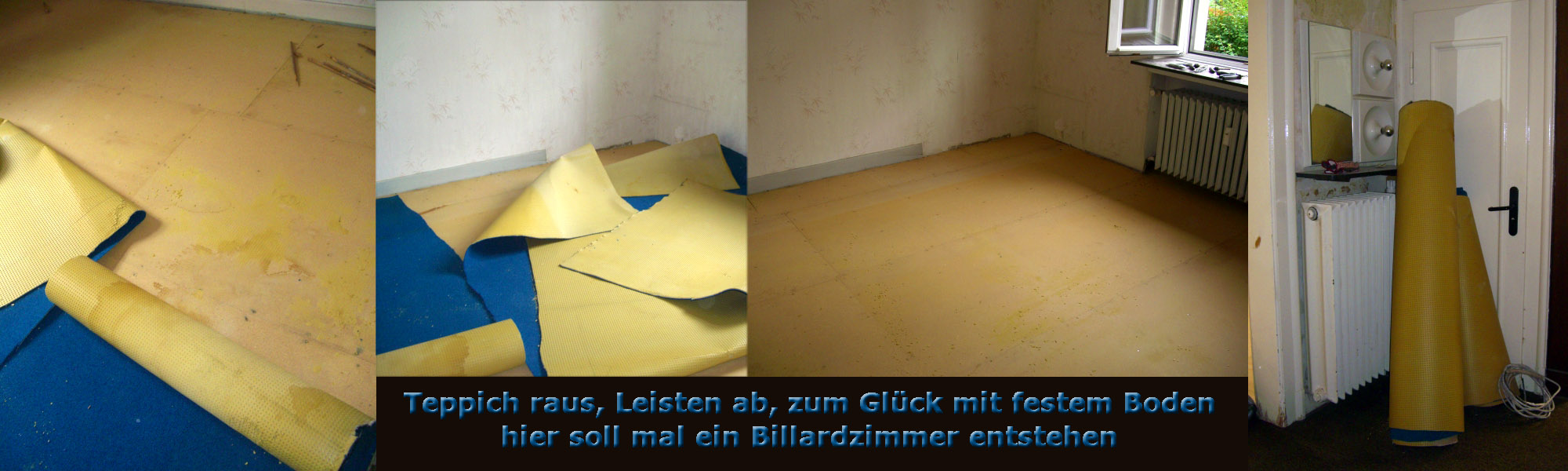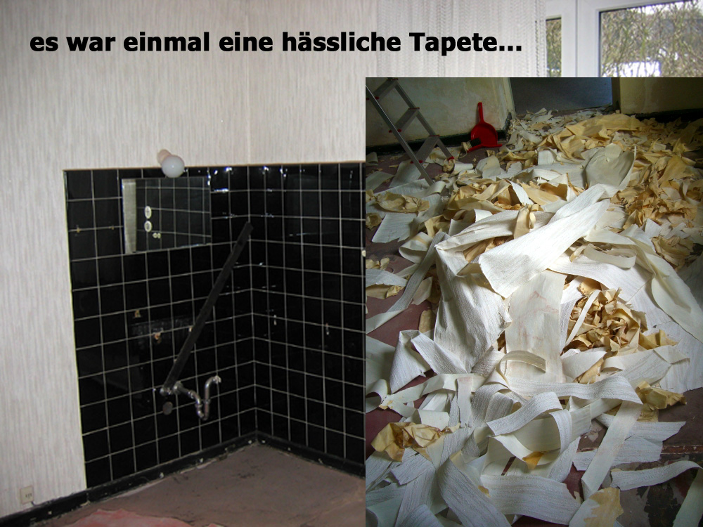 Mal ganz abgesehen von einem kleinen nervlichen Zusammenbruch habe ich von 9 bis 19 Uhr erfolgreich das zukünftige Billardzimmer von Tapeten befreit