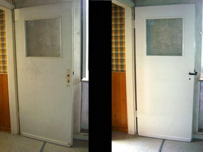 Endlich, heute habe ich mal was getan, was man auch sieht. Von 9 – 21 Uhr hieß es schleifen, lackieren, schleifen, lackieren, schleifen, lackieren, schleifen, lackieren, schleifen, lackieren, … Und dann waren plötzlich 4 Heizungsverkleidungen wie neu und die Küchentür zum neuen Anstrich vorbereitet. Nachdem ich dann erst mal eine kleine Schleifmouse hatte ging das auch ratz fatz und machte auch noch Spaß.